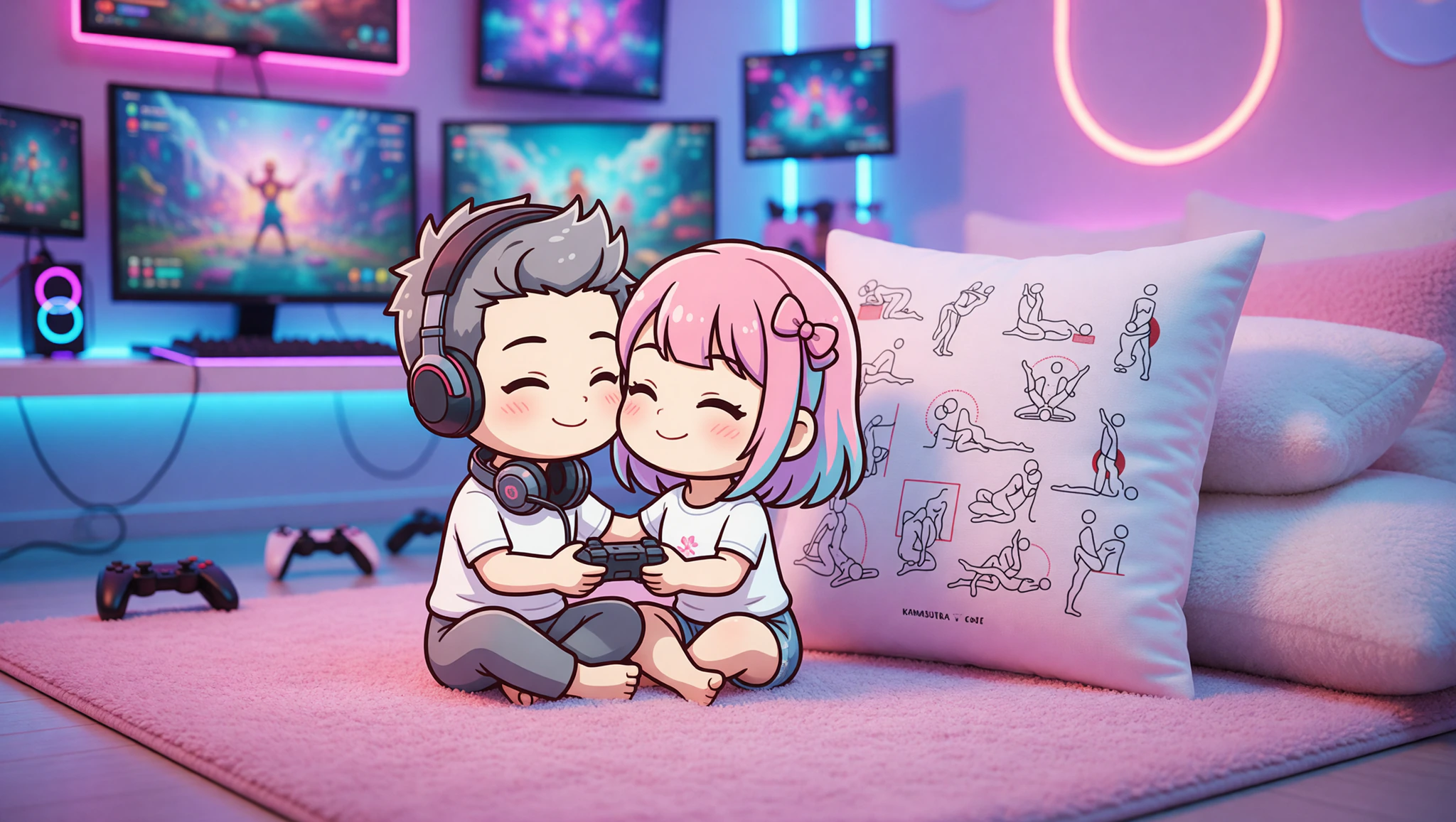 Er liegt flach auf dem Rücken, du kniest über ihm und senkst dich langsam. Bewegt euch rhythmisch wie ein Level-Aufstieg. Schaut euch tief in die Augen, haltet imaginäre Controller. Atmet synchron für intensiven Flow. Perfekt für erste Power-Ups.