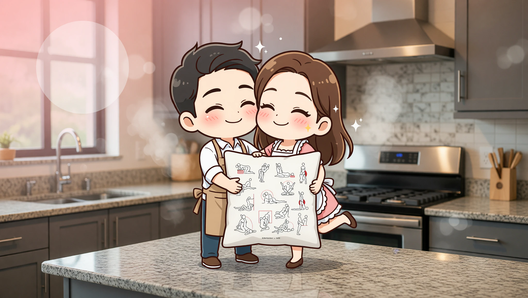 Sie setzt sich auf den Tresenrand, spreizt die Beine leicht. Du stehst dazwischen, hebst ihre Hüften an und dringst ein. Halte ihren Rücken gestützt, bewege dich rhythmisch. Perfekt für intensive Augenkontakt.
