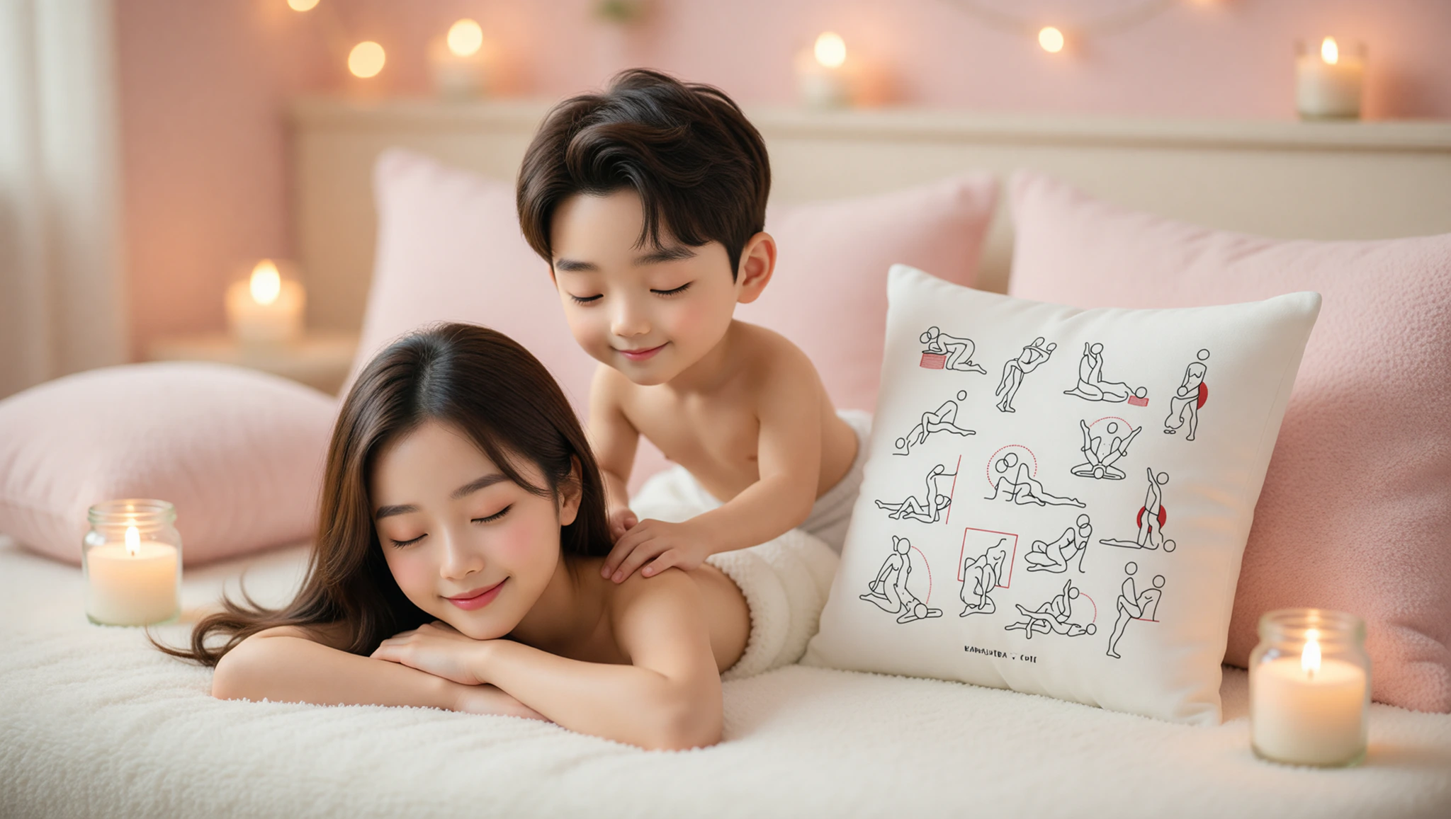 Er liegt hinter dir, eng umschlungen. Seine Hände wandern über deinen Rücken, massieren Schultern und Hüften. Bewegungen langsam, rhythmisch. Atmet synchron, lasst die Wärme aufsteigen. Perfekt für tiefe Entspannung.