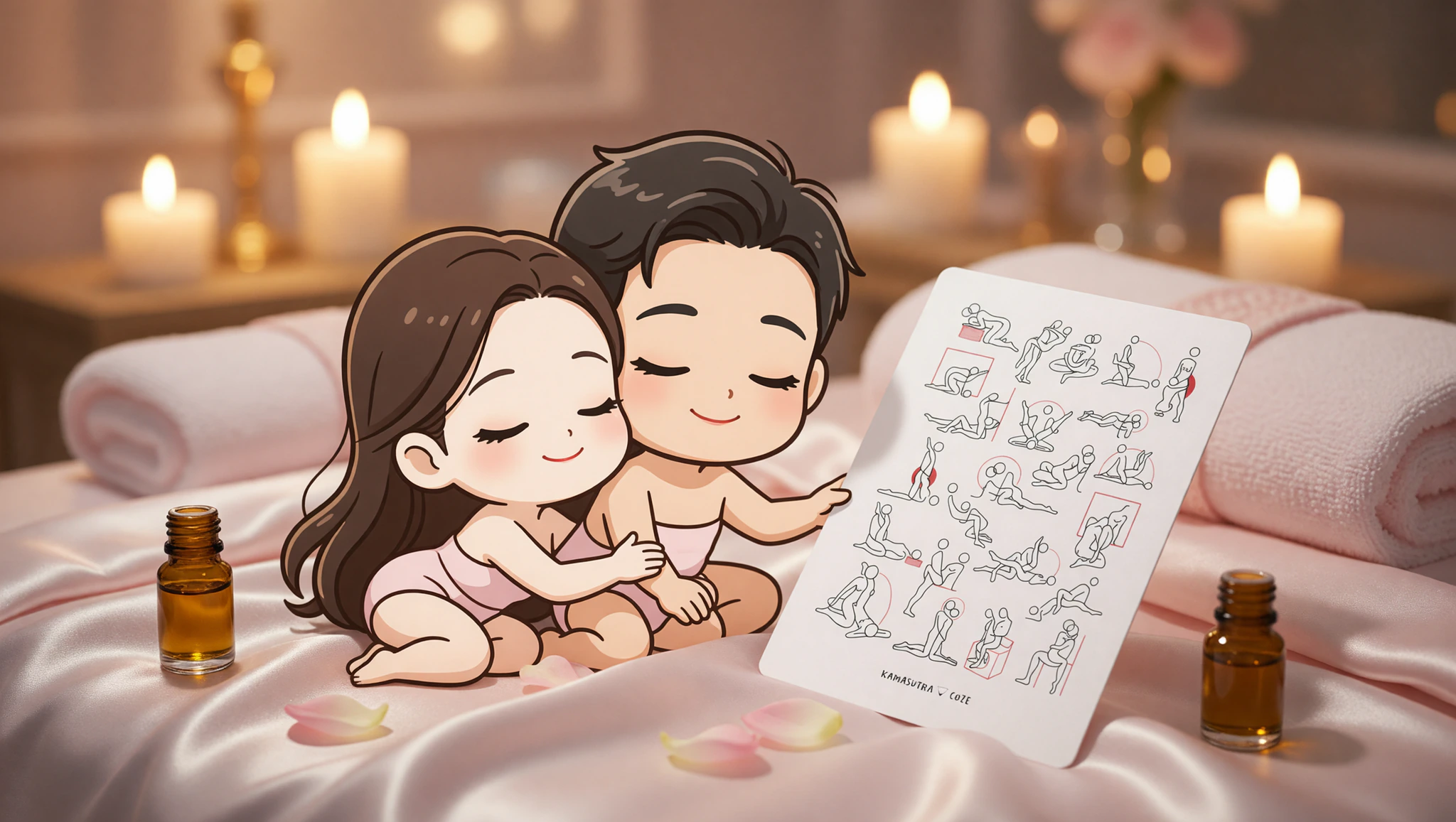 Respira al unísono para sincronizaros. Usa las Kamasutra Cute - Poker playing cards para elegir posiciones al azar y añadir sorpresa romántica a vuestras noches.