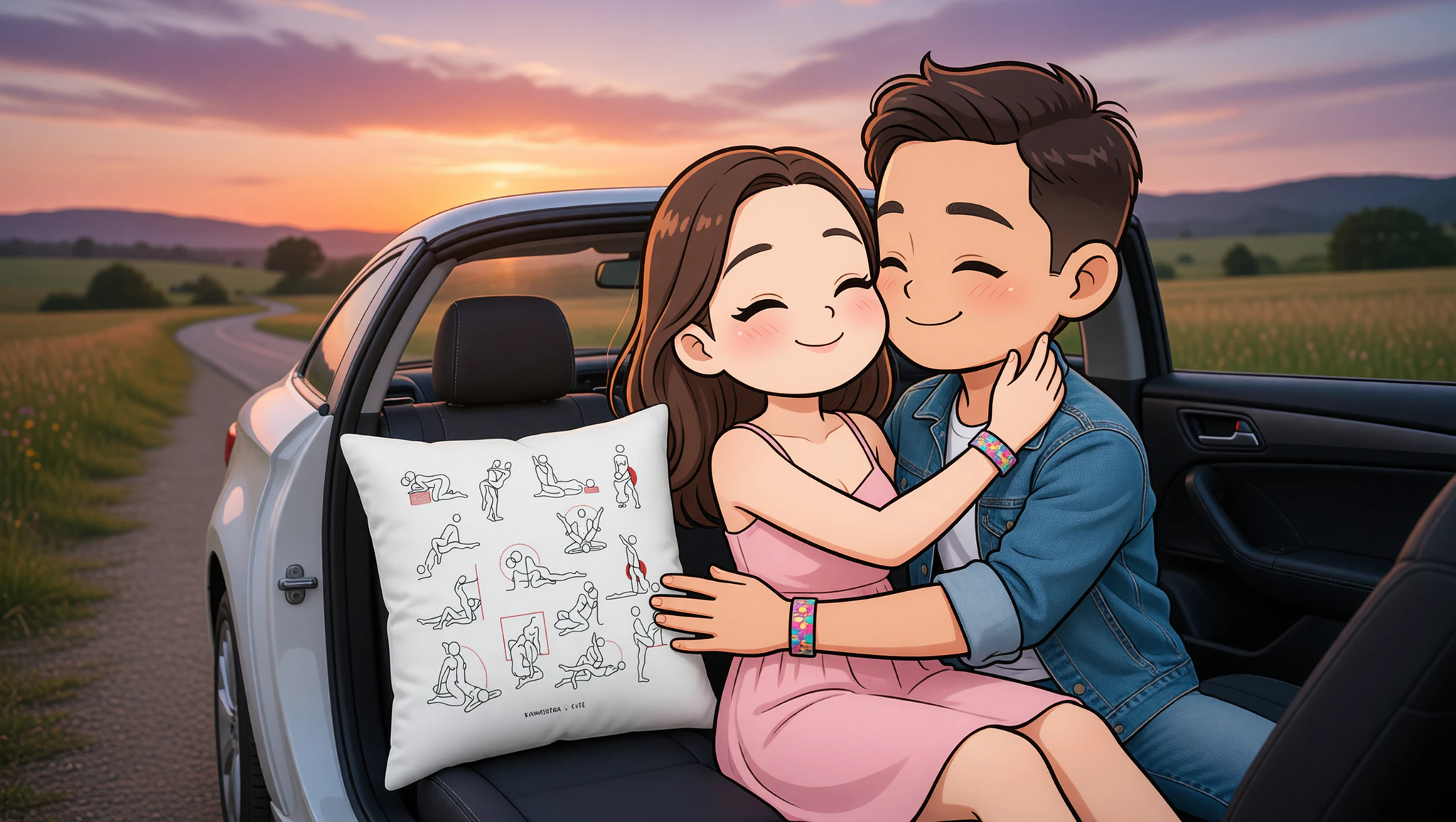 Find a quiet pull-off and recline the backseat fully. She lies back with knees bent. He positions between her legs, entering deeply. Use the seatback for thrusts. Sway to your road trip playlist for rhythmic fun. Ideal for intimate eye contact.