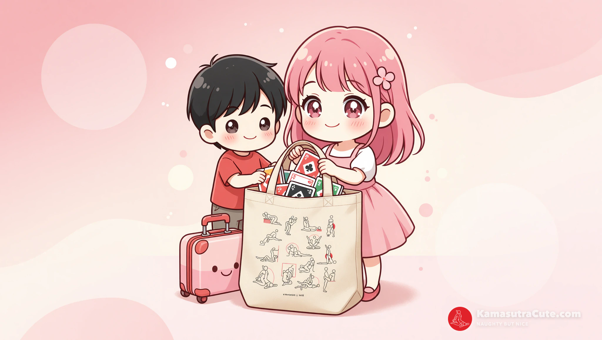 Select a thick romance novel or beach read over 300 pages long. Slide your Kamasutra poker cards flat between middle pages for perfect camouflage. Nestle the book into your Kamasutra Cute - Eco Tote Bag. Blend literature with hidden lust on every adventure.