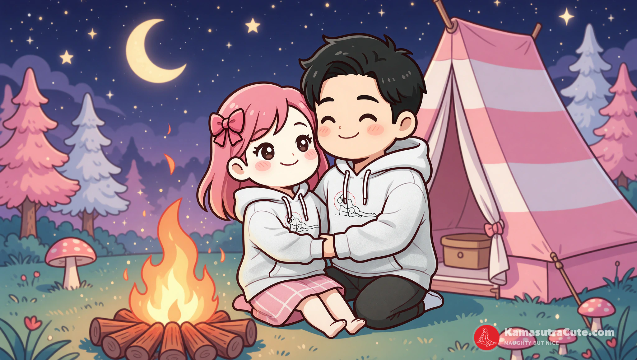 Find a sheltered campfire spot. Slip into your Kamasutra Cute Unisex Hoodie and sit close together. Take turns leaning in to whisper sweet nothings, secrets, or fantasies into each other's ears. Cool night air adds shivers. Pull hoods tight and bodies closer for instant heat.