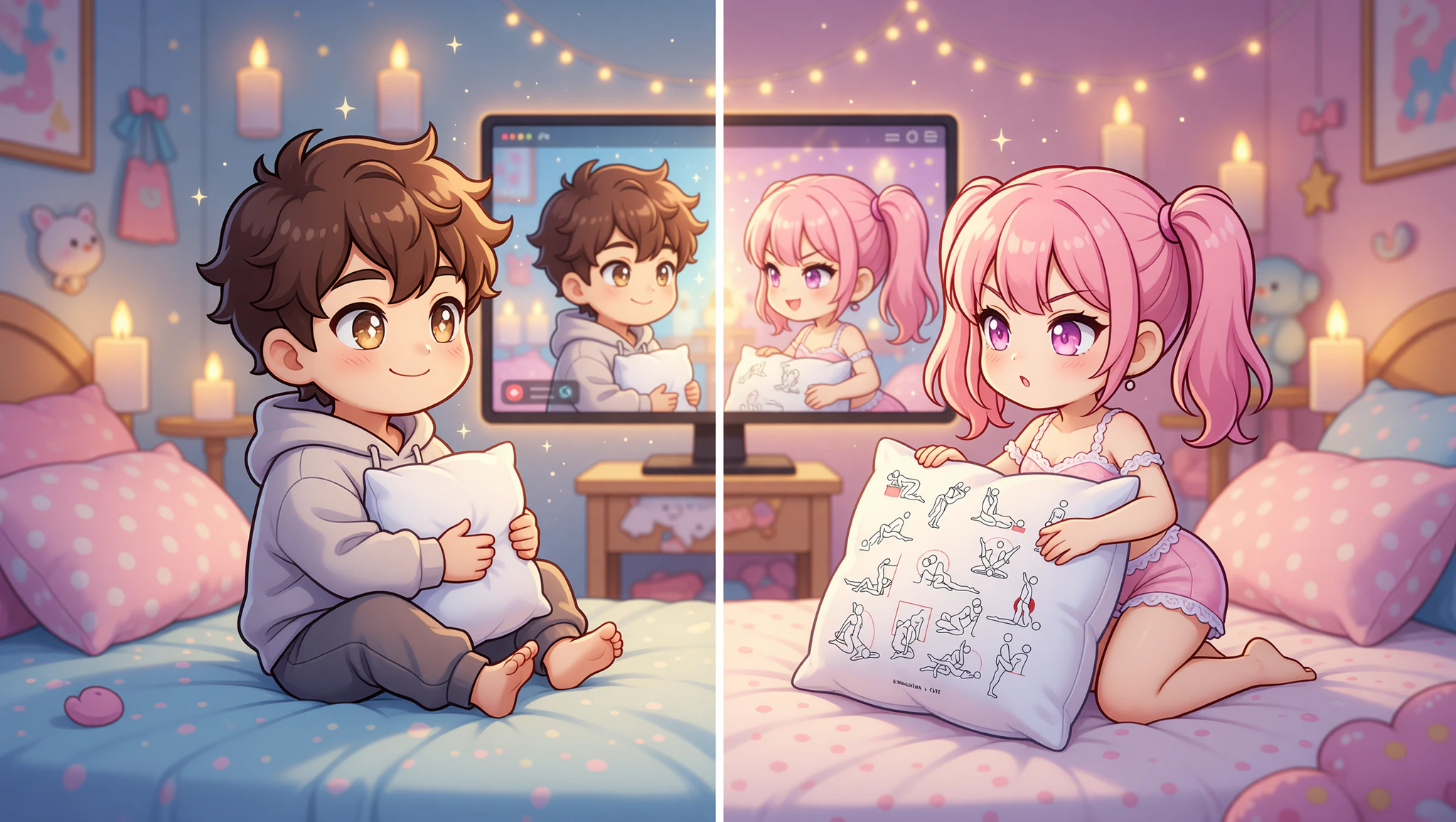 Prop phones on pillows for steady angles. Maintain eye contact to deepen emotional intimacy. Practice solo first to master timing.