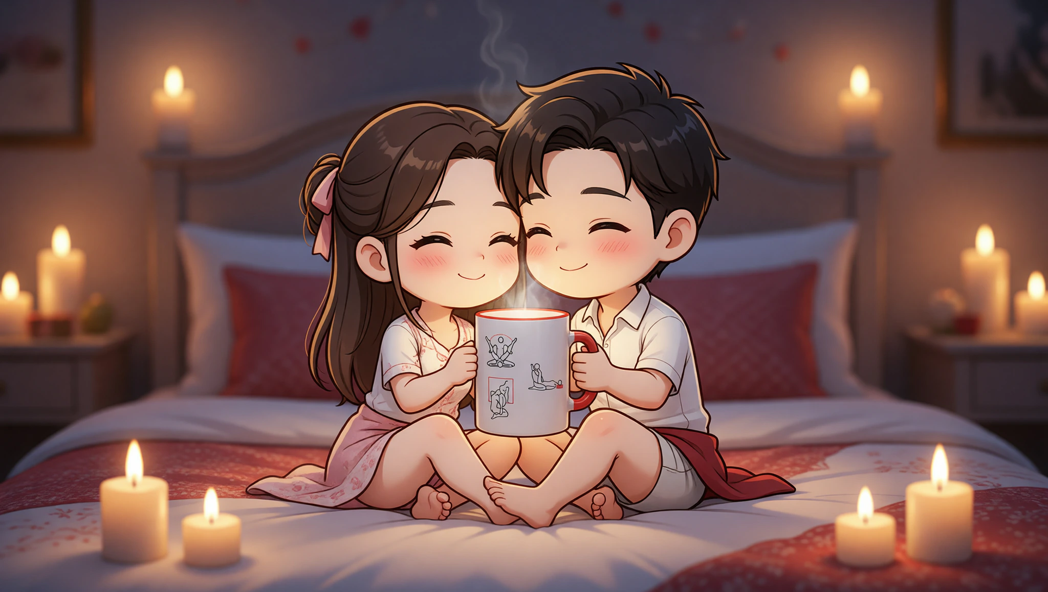 Sit facing each other on the bed. Cross your legs if comfortable. She straddles his lap and wraps legs around his waist. He enters slowly. Rock hips forward and back. Hold hands. Gaze into eyes during your anniversary moment. Breathe in sync.