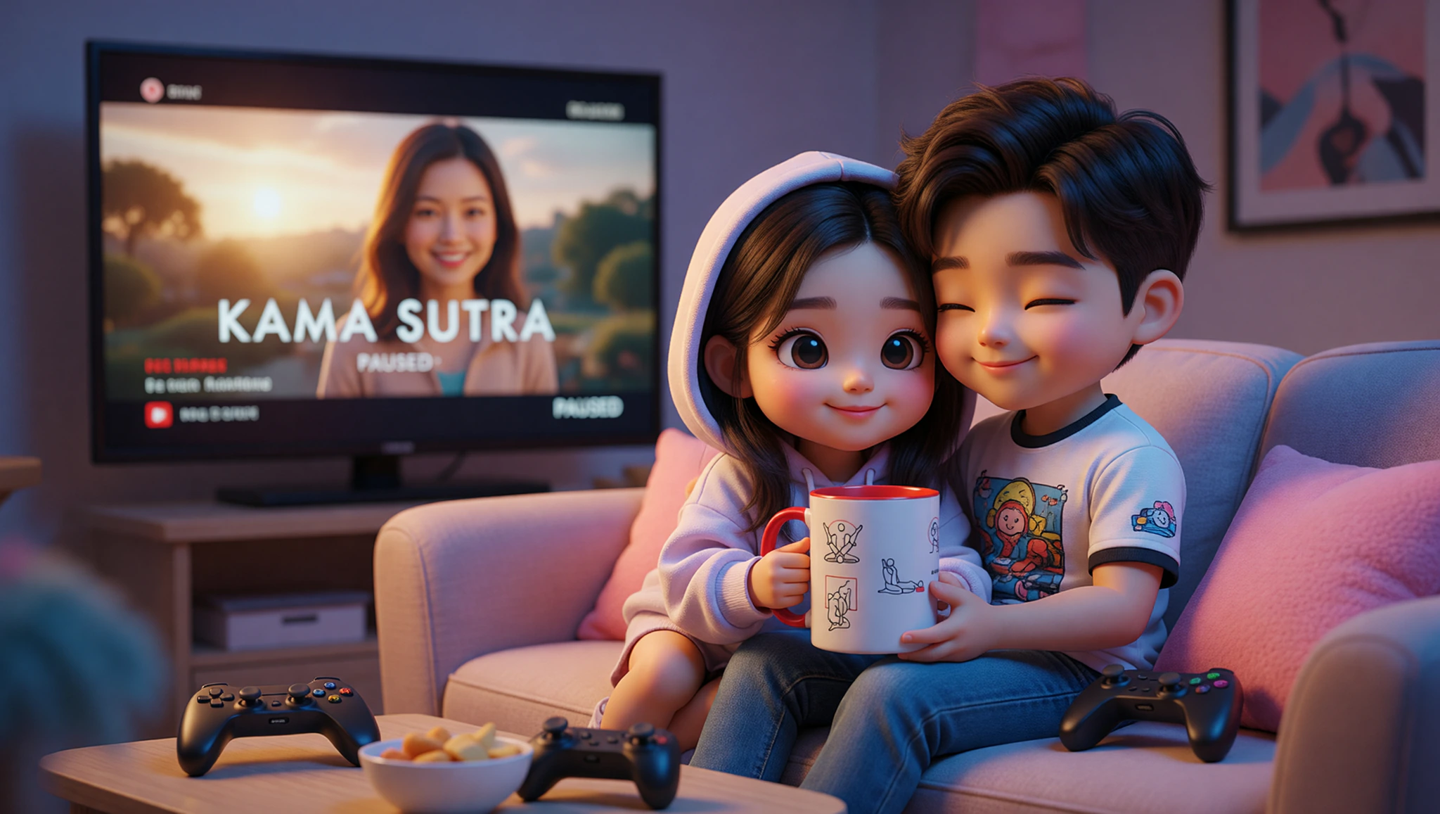She leans back hands on his thighs. Grind in circles. Builds slow tension.