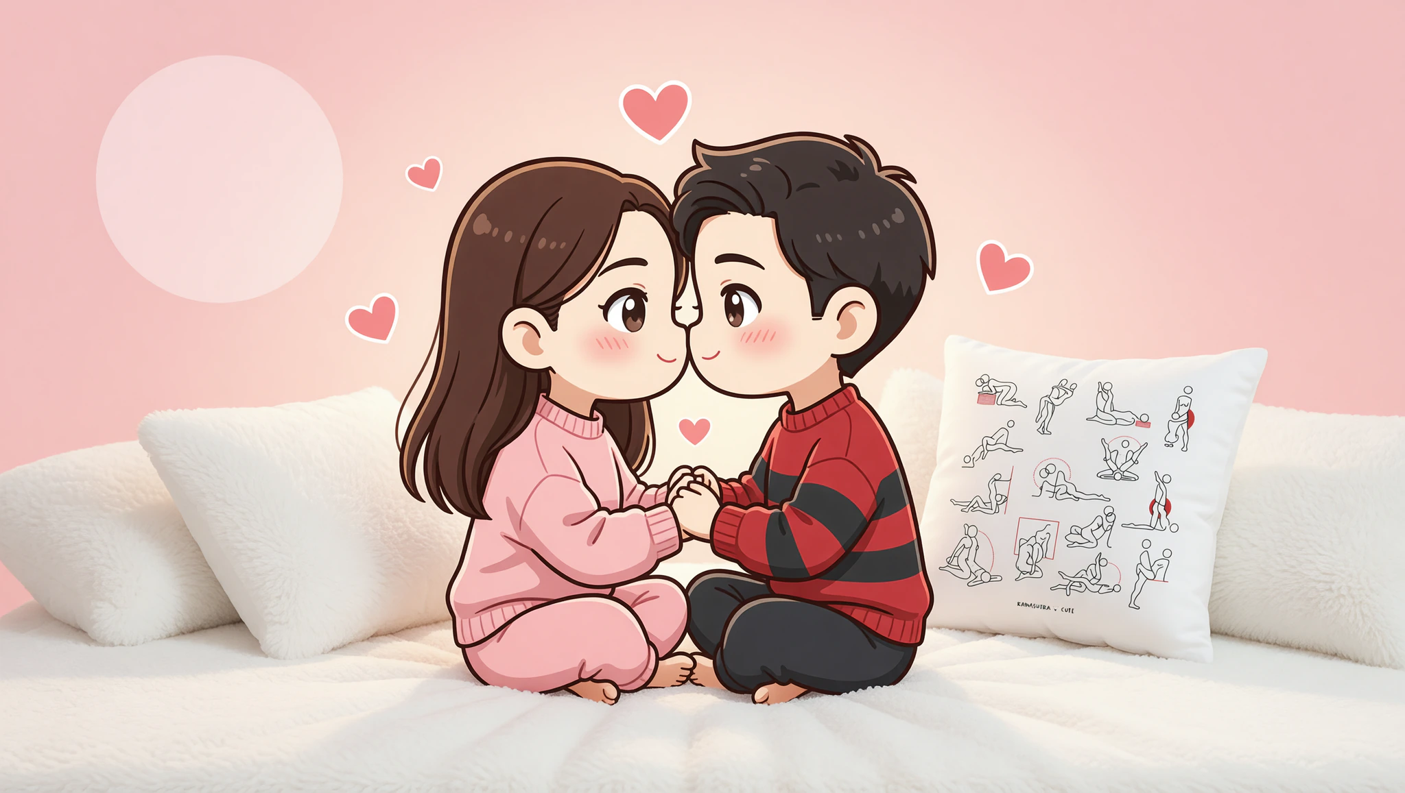 Sit facing each other on the bed with legs crossed. She wraps her legs around his waist as he enters slowly. Rock together gently, maintaining eye contact. Hands caress backs and faces for full connection. Breathe in sync to deepen the bond.
