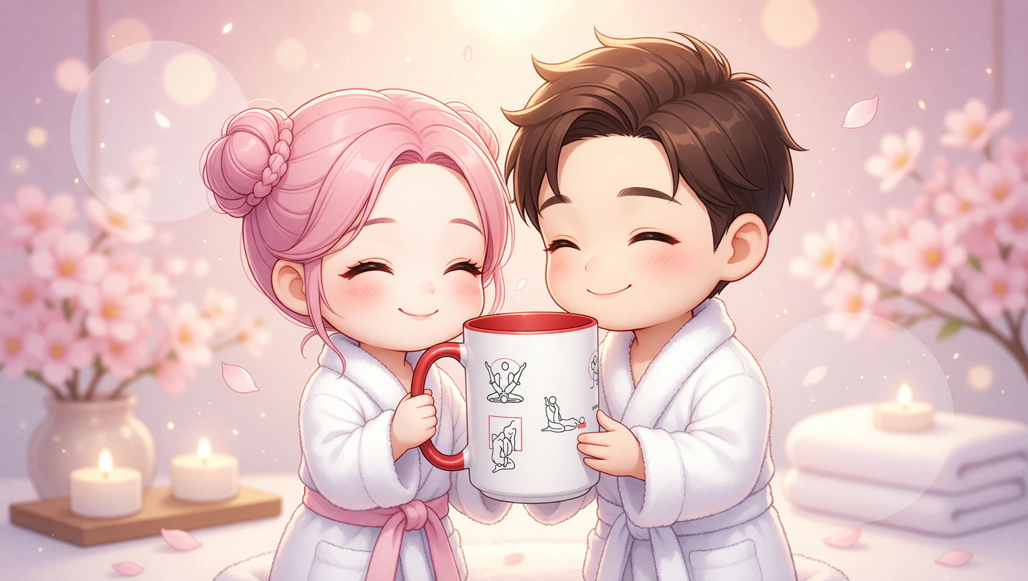 Sit cross-legged facing each other on a bed piled with pillows. She wraps legs around his waist as he enters. Sway hips slowly. Massage her back in circles with warmed coconut oil.