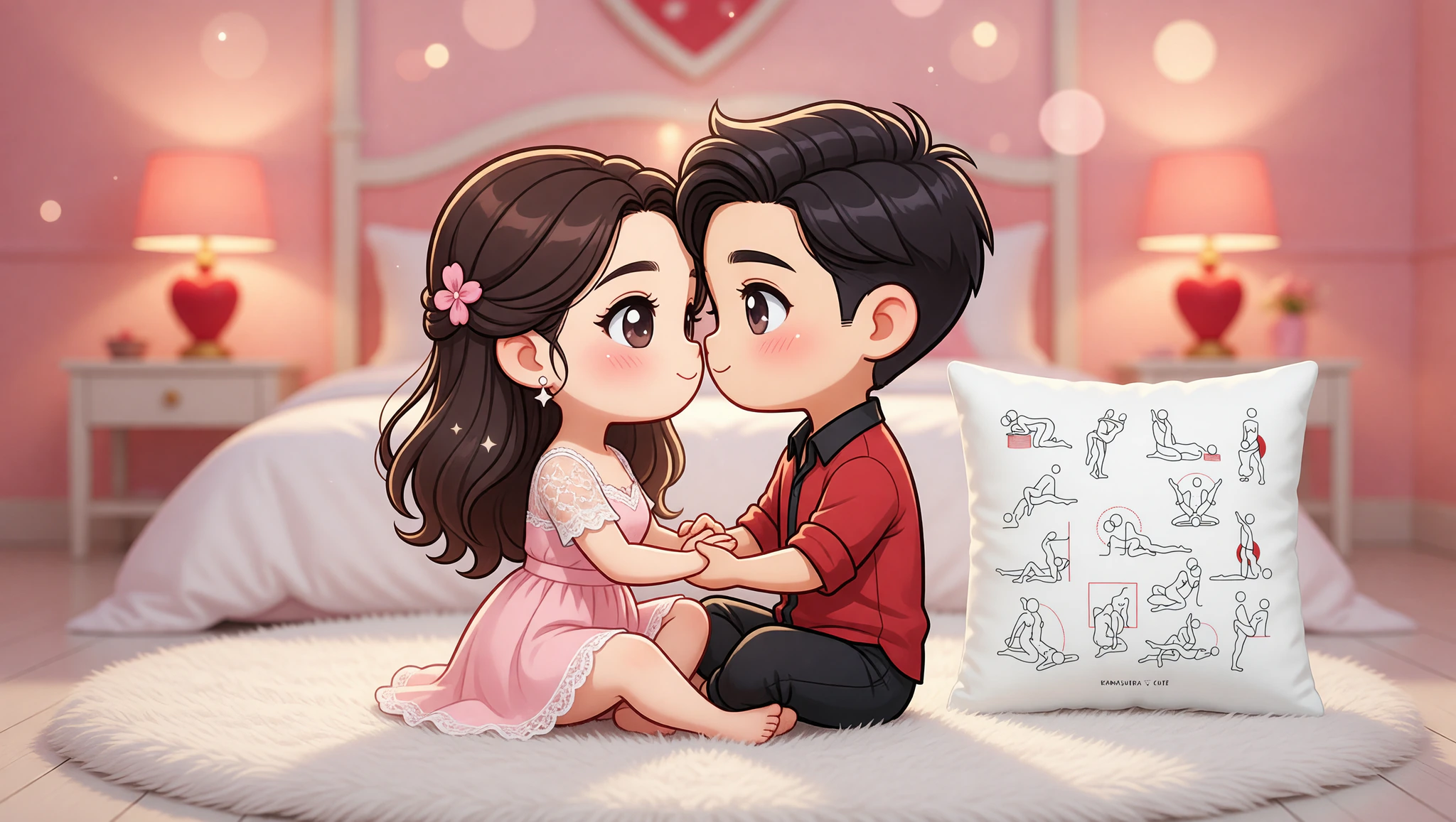 Sit facing each other on the bed, legs crossed. She straddles his lap, wrapping her legs around his waist. He supports her hips. Rock rhythmically together, maintaining deep eye contact. Lean in for kisses to amplify closeness.