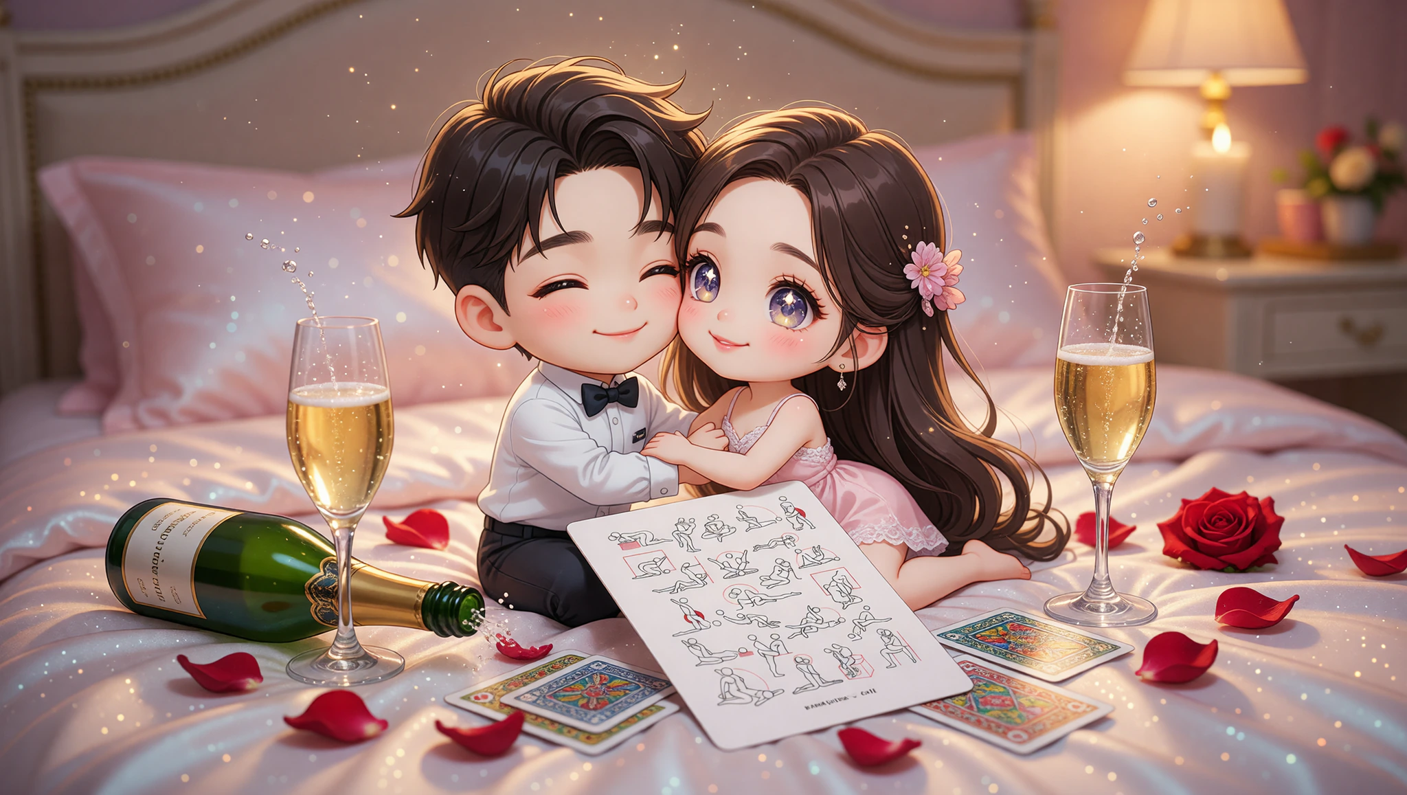 Draw from Kamasutra Cute - Poker playing cards to decide who pours first. Chill glass for shivers. Maintain eye contact. Share an anniversary vow mid-thrust for deeper connection.
