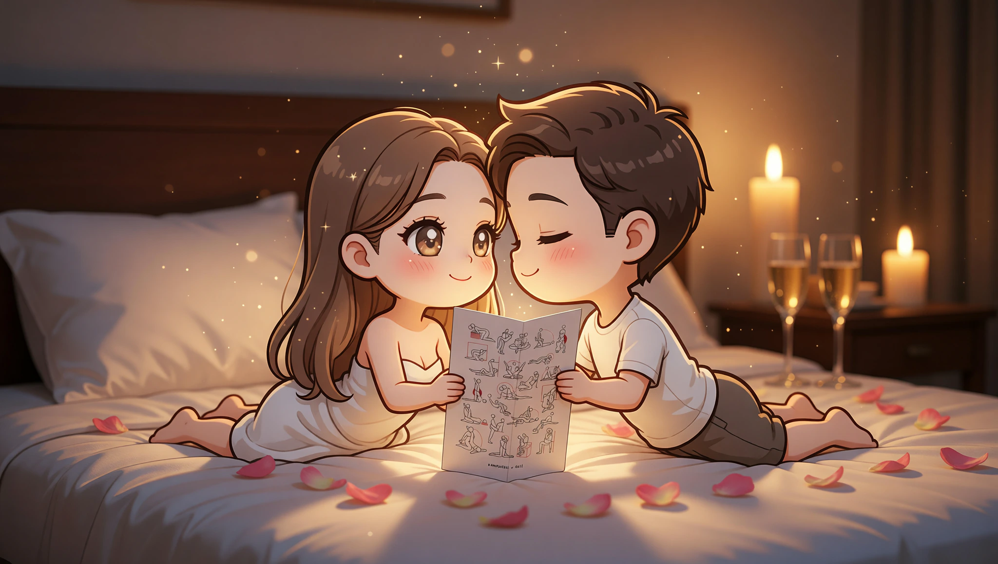 Scatter 10 to 15 unscented candles on nightstands, dresser, and floor around your bed. Dim overhead lights completely. Queue a playlist of slow R&B or jazz. Sprinkle rose petals on sheets. Invite your partner to sit close, clinking glasses of chilled champagne before easing into position.