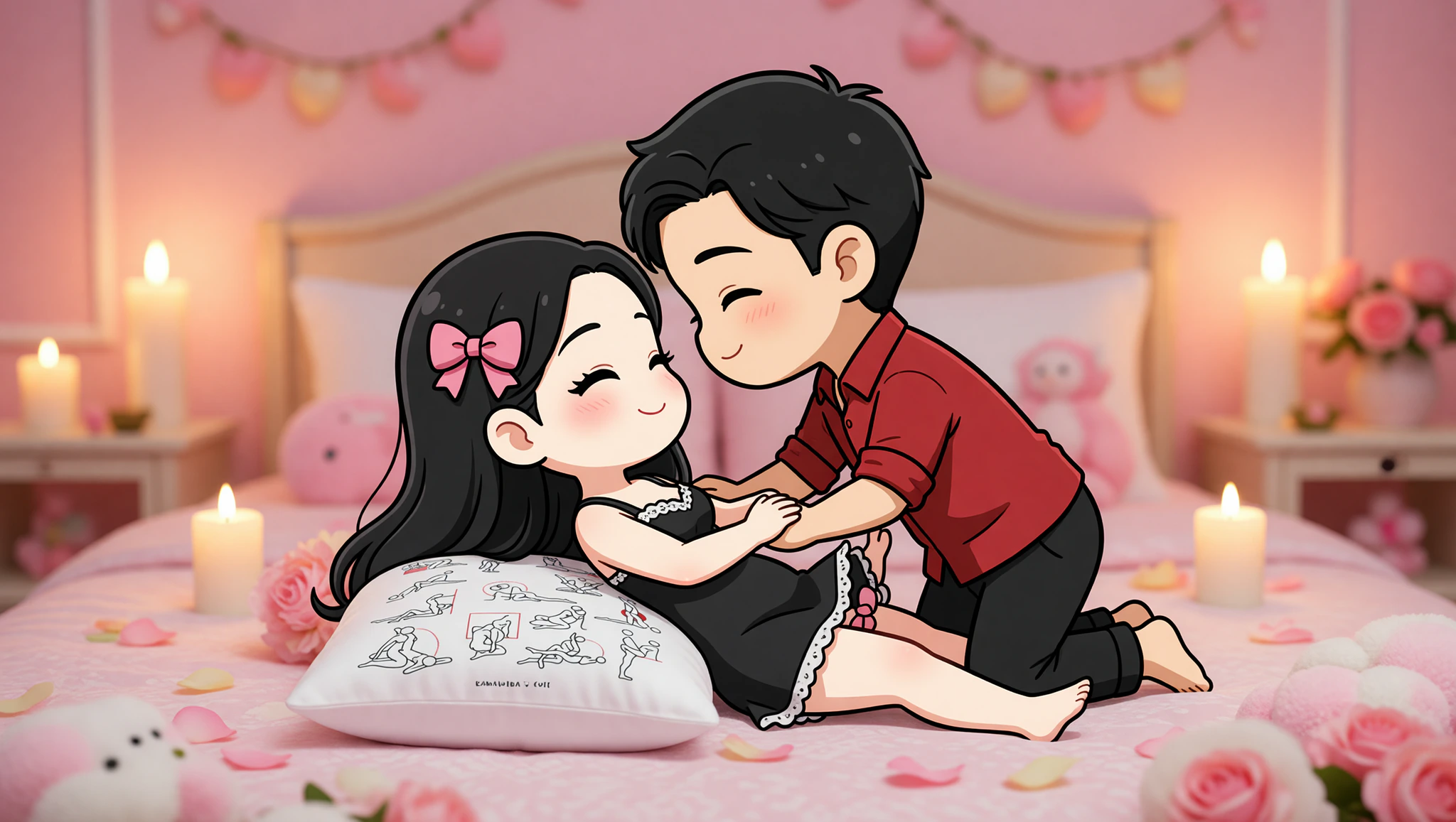 She lies on her back with knees drawn up. He kneels between her legs, sliding the Kamasutra Cute - Basic Pillow under her hips for perfect alignment. He enters slowly, thrusting deep while she wraps legs around his waist. Rock together rhythmically for intense closeness.